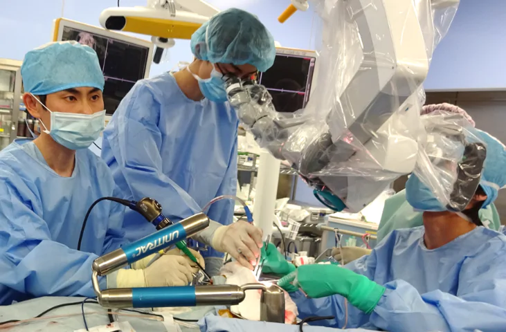 水頭症ではシャント留置が不要な第3脳室底開窓術を行っています。また、脳内出血や脳腫瘍においても従来の開頭手術ではなく、穿頭/小開頭で内視鏡下の腫瘍摘出や血腫除去術を積極的に取り組んでいます。