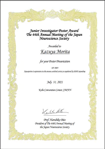第44回日本神経科学大会 ジュニア研究者ポスター賞受賞!!
